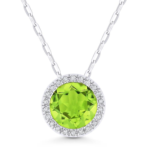 Madison L 14k White Gold Halo Design Peridot Pendant