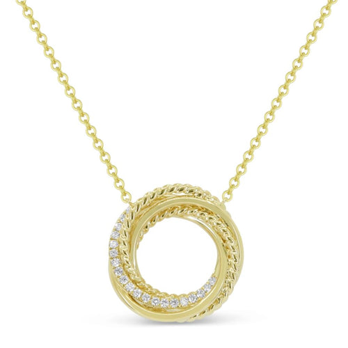 Madison L 14k Yellow Gold Crossover Circle Diamond Pendant Necklace with Rope Detail