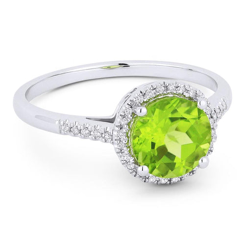 Madison L 14k White Gold Halo Design Peridot Birthstone Fashion Ring