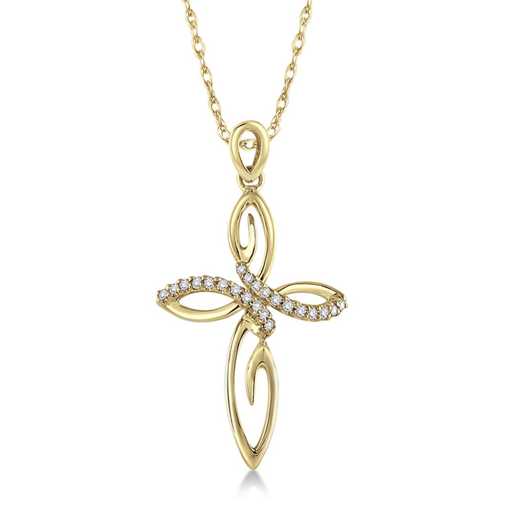 Delicate and radiant, this Davis Signature 14k yellow gold cross pendant necklace features 22 shared prong-set round brilliant-cut diamonds, totaling 0.08 carats, with J/K color and SI2-I1 clarity. Suspended on an adjustable 16-18" chain with a secure lobster clasp, this elegant design is a timeless symbol of grace and devotion.