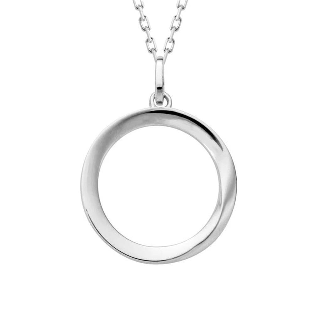 This elegant Davis Signature sterling silver pendant features a sleek twisted round design, offering a modern yet timeless appeal. Suspended from an adjustable 16-18" light link chain and secured with a lobster clasp, this versatile piece is perfect for effortless everyday elegance.