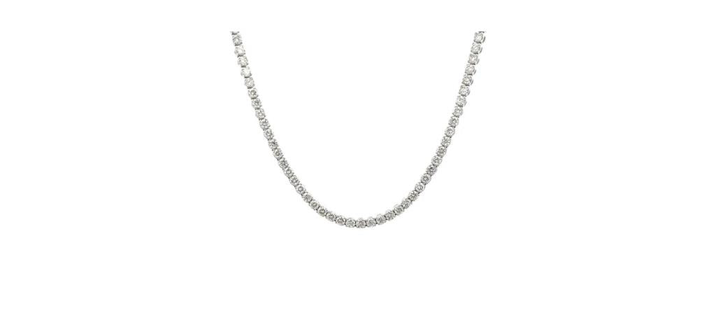 This breathtaking Davis Luxe18-inch 14k white gold tennis necklace showcases 165 graduated round brilliant-cut diamonds, each secured in classic 4-prong settings for maximum light return. Totaling 10.03 carats, the diamonds radiate beautifully with G/H color and SI1–SI2 clarity, creating a seamless river of sparkle that drapes elegantly along the neckline. Finished with a secure tongue clasp and safety lock, this necklace embodies timeless luxury and exceptional craftsmanship—an extraordinary statement piece for the most refined jewelry collections.