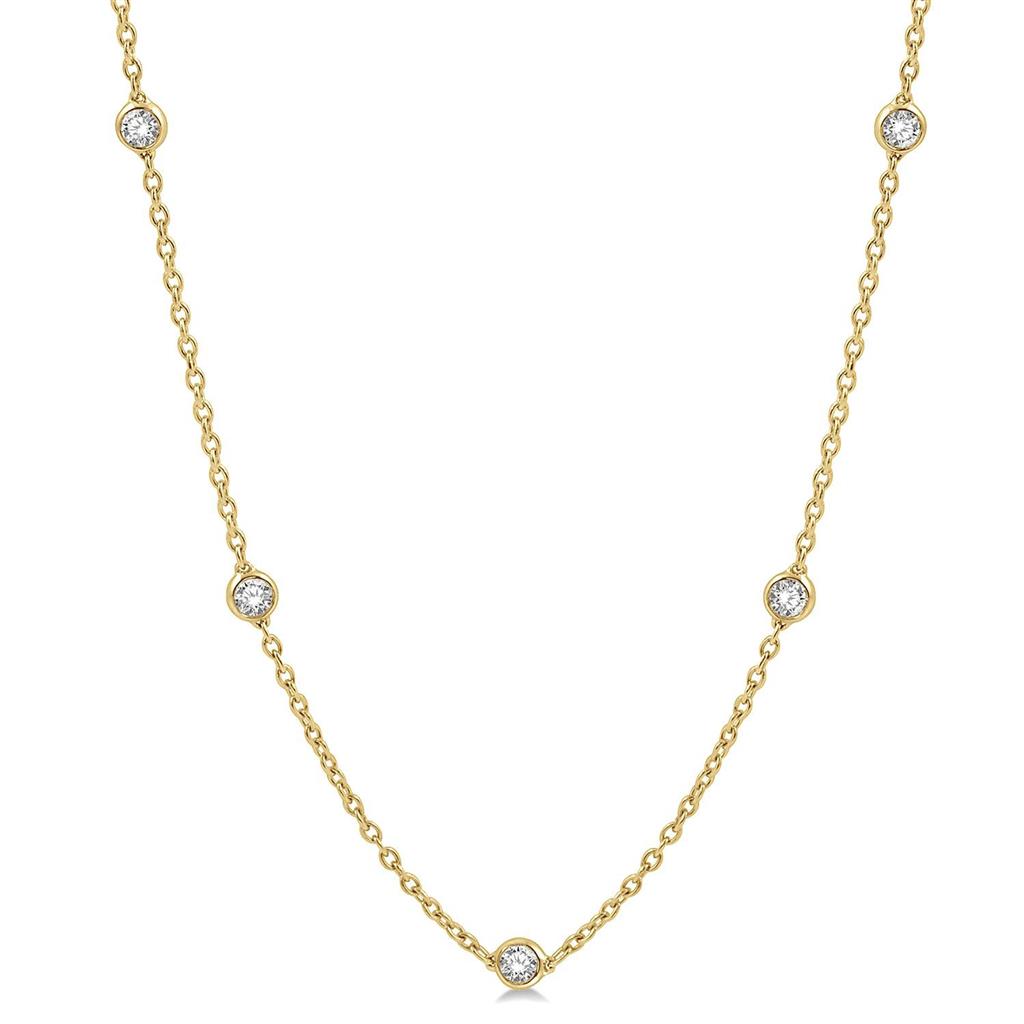 Effortlessly elegant, this Davis Signature Diamond by the Yard station necklace is crafted in 14k yellow gold and measures 18 inches in length. Eleven bezel-set round brilliant-cut diamonds are evenly spaced along the chain, totaling an impressive 1.50 carats. Featuring I/J color and SI2–I1 clarity, the diamonds offer a warm, luminous sparkle that’s both refined and timeless. Finished with a secure lobster clasp, this necklace is a versatile staple—perfect worn alone or layered for a modern look.