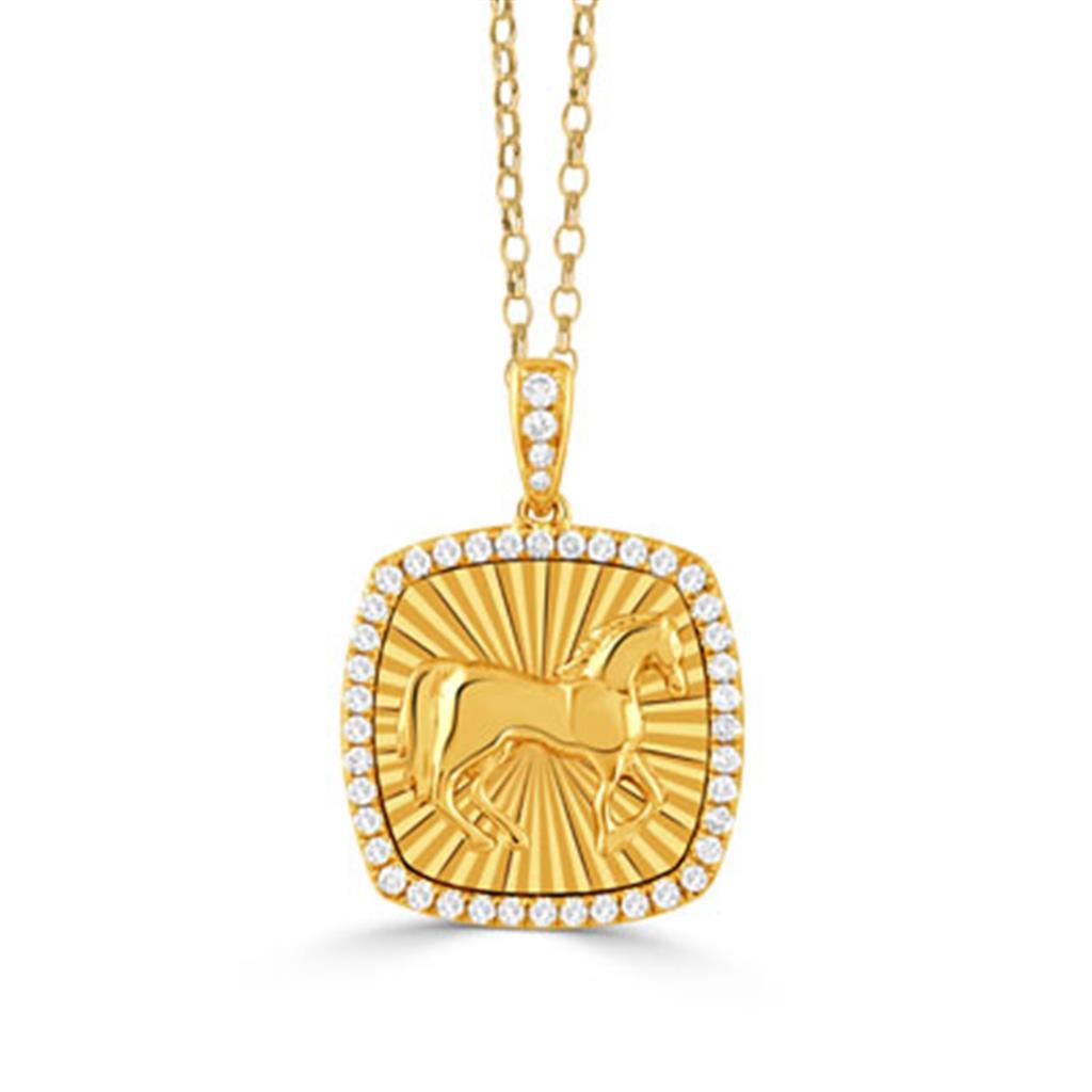Doves Equestrian Collection Diamond Horse Halo Pendant Necklace