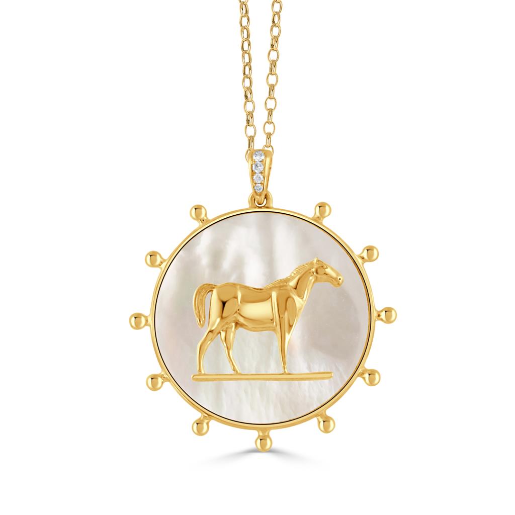 Doves Equestrian Collection Mother of Pearl & Diamond Horse Disc Pendant