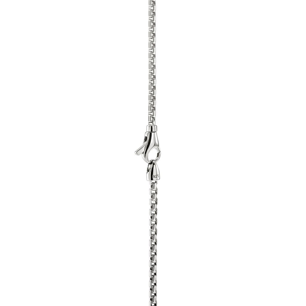 From the Icon Collection by John Hardy, this sterling silver necklace features a polished Star of David pendant on a 2.7mm chain for a clean, modern look. Measuring 22 inches in length, it secures with a sleek lobster clasp, offering a versatile design that blends signature craftsmanship with understated elegance. Style no. NM989488