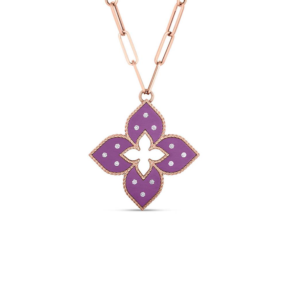 Roberto Coin 18k Rose Gold Venetian Princess Collection Fuchsia Titanium Floral Pendant Necklace