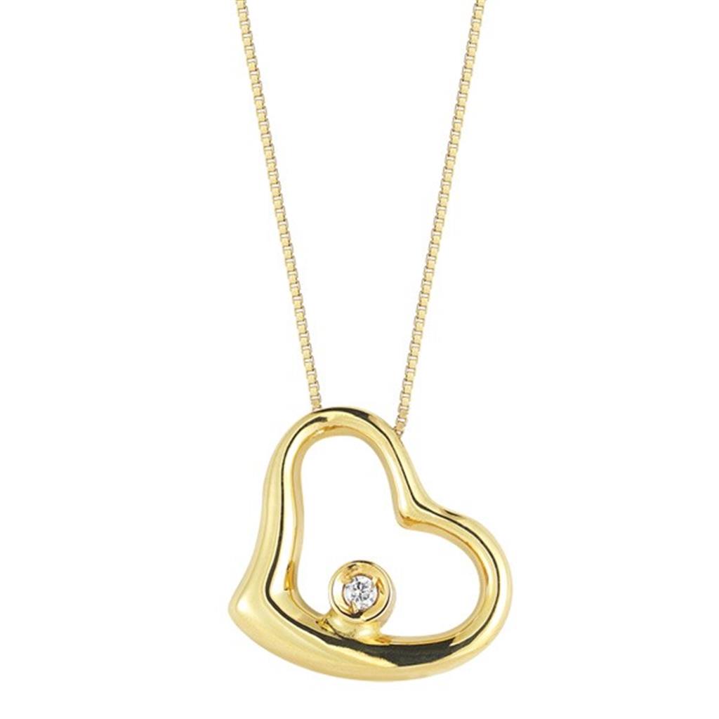 Indulge in the delicate elegance of the Roberto Coin 18k Yellow Gold Tiny Treasures Collection. This medium diamond heart necklace features a bezel-set round brilliant cut diamond weighing 0.01 carats, suspended on an 18" baby box chain with a lobster clasp. Combining luxurious design with exquisite craftsmanship, this necklace is a perfect addition to any jewelry collection. Style # 023204AYCHX0.