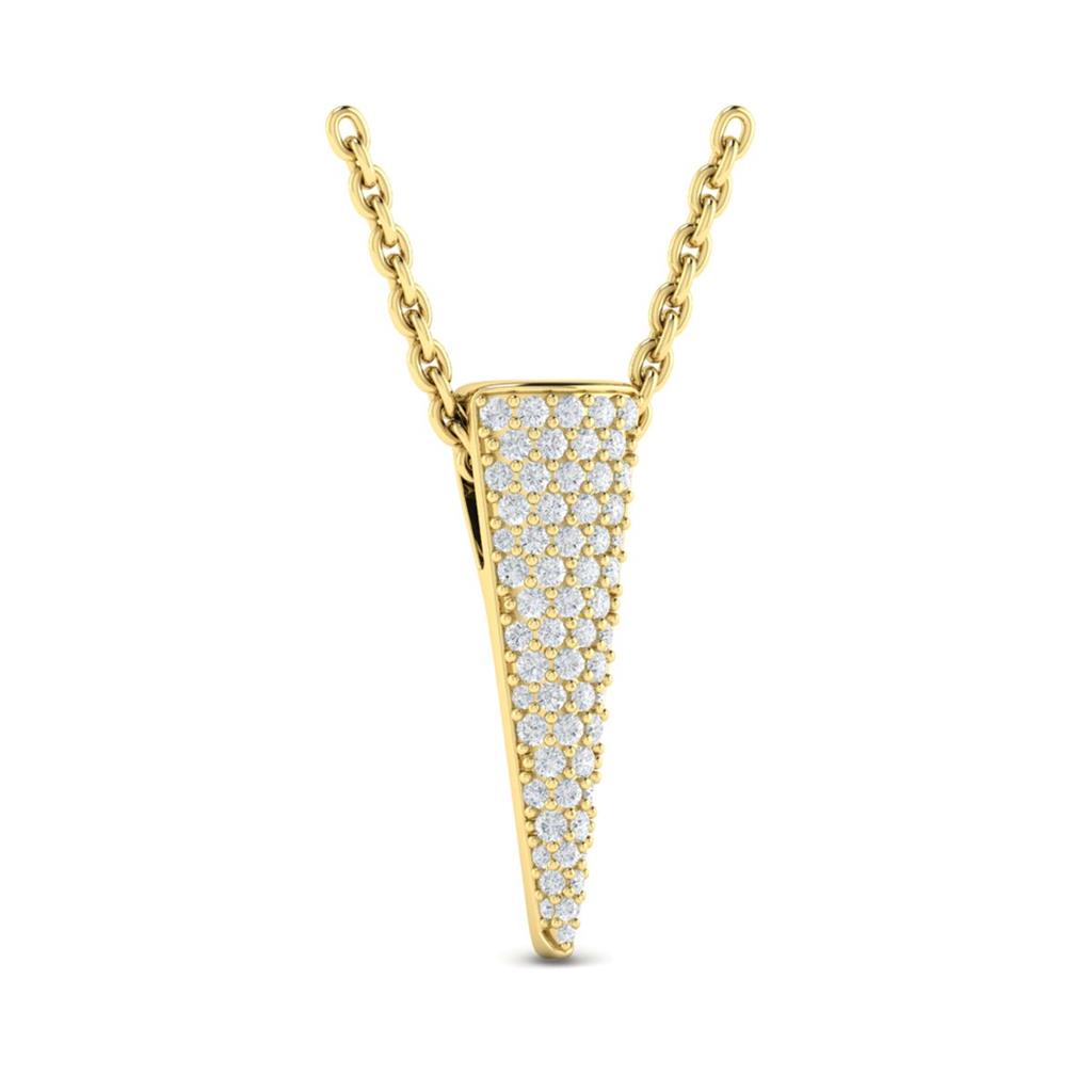 Elevate your elegance with the Davis Luxe 14k Yellow Gold Miravel Collection. This adjustable 16-18" diamond trinity drop pendant necklace features 60 shared bead set round brilliant cut diamonds totaling 0.36 carats, with G color and VS2-SI1 clarity. Secured with a lobster clasp, this necklace combines a sophisticated trinity drop design with exquisite craftsmanship, making it a stunning addition to any jewelry collection.