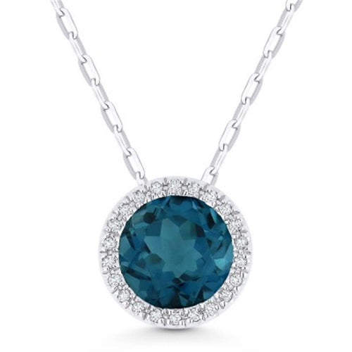 Madison L 14k White Gold Halo Design London Blue Topaz Pendant