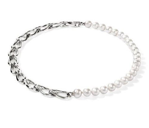John Hardy Pearl Huggie Hoop Earrings in Sterling Silver