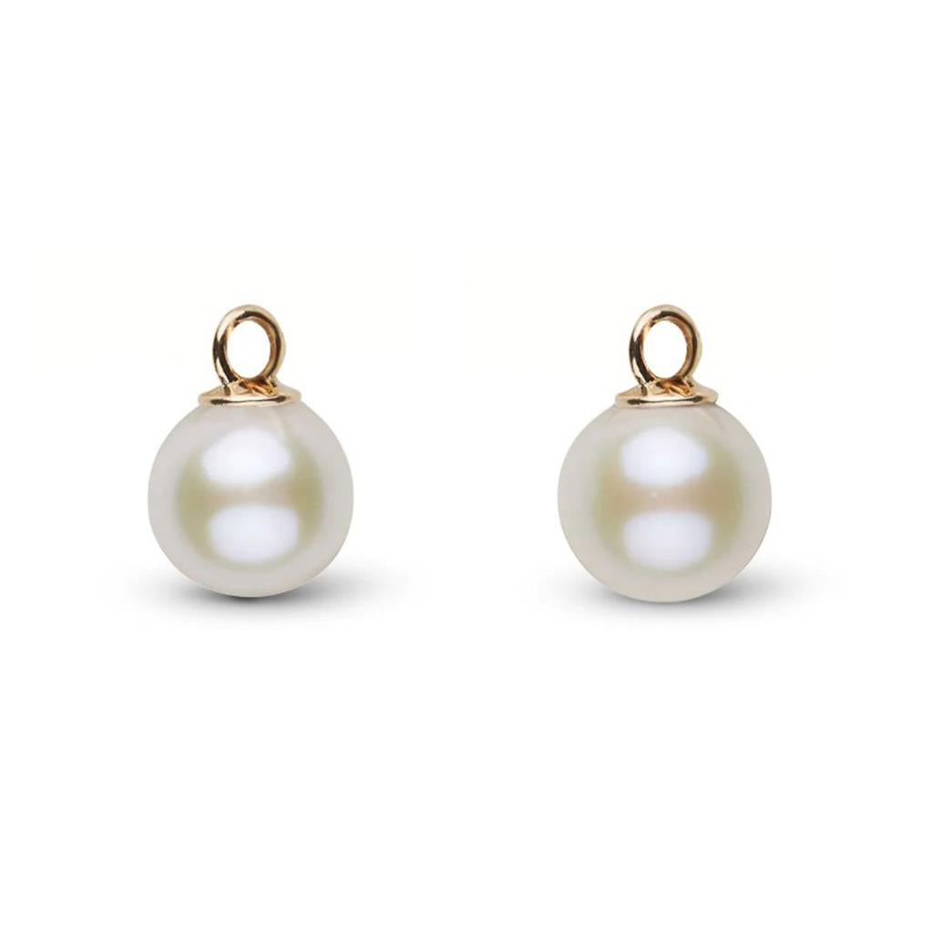 Davis Luxe Collection Pearls Drop Earrings in 14k Yellow Gold. White Japanese Akoya Pearl, Size: 7.5mm - 8mm.