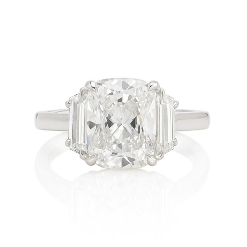 Davis Classics Platinum Three-Stone Cushion-Cut Diamond Proposal-Ready Engagement Ring