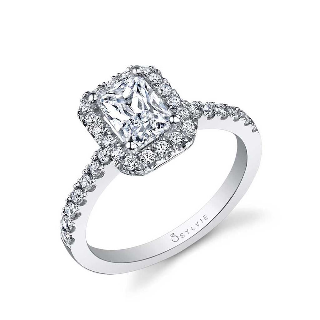 Sylvie 14k White Gold Emerald-Cut Halo Design Engagement Ring Setting