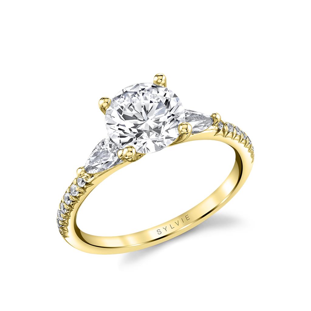 Sylvie 14k Yellow Gold Three Stone Semi Mount with Pear Cut Side Diamonds