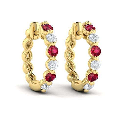Vlora 14k Yellow Gold Adella Color Collection Ruby and Diamond Twist Hoop Earrings