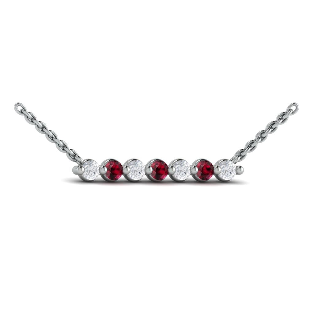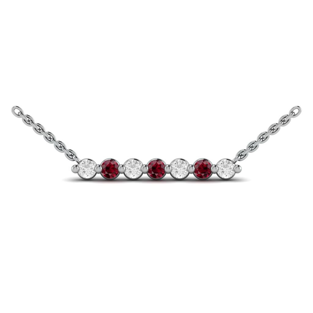 Davis Luxe 14k White Gold Adella Collection Bar Necklace with Rubies and Diamonds