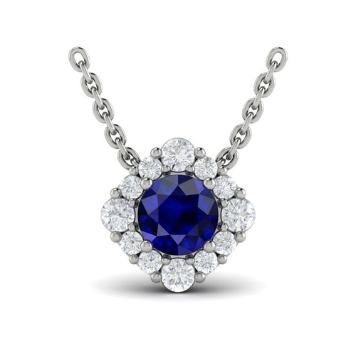 Vlora 14k White Gold Halo Design Sri Lanka Sapphire Pendant Necklace