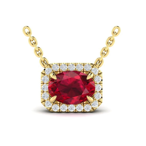 Vlora 14k Yellow Gold Adella Color Collection Ruby and Diamond East/West Halo Pendant Necklace