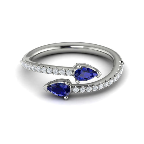Vlora 14k White Gold Sofia Collection Bypass Design Sapphire and Diamond Fashion Ring
