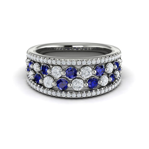 Vlora 14k White Gold Adella Collection Multi-Row Blue Sapphire and Diamond Wide Tapered Domed Band
