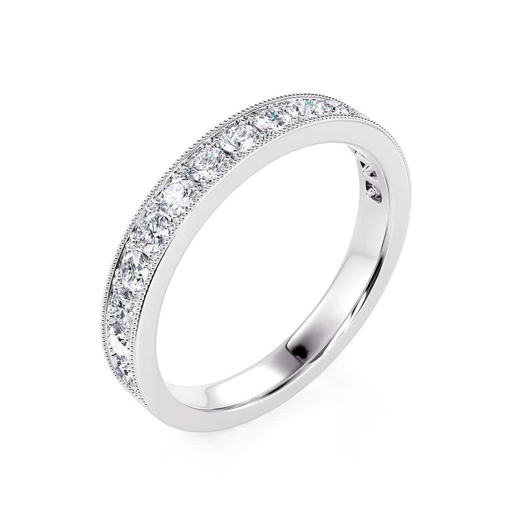This stunning diamond band by Davis Classics in 14k white gold features intricate milgrain detailing that adds a touch of vintage elegance. Adorned with 11 micro pavé set round brilliant cut diamonds, each measuring 2.9mm and totaling 1.00 carat, these diamonds sparkle with G/H color and VS1-VS2 clarity, beautifully symbolizing enduring love. Available in size 6, with additional sizes upon request, this elegant band is perfect for celebrating life’s most cherished moments and meaningful commitments.