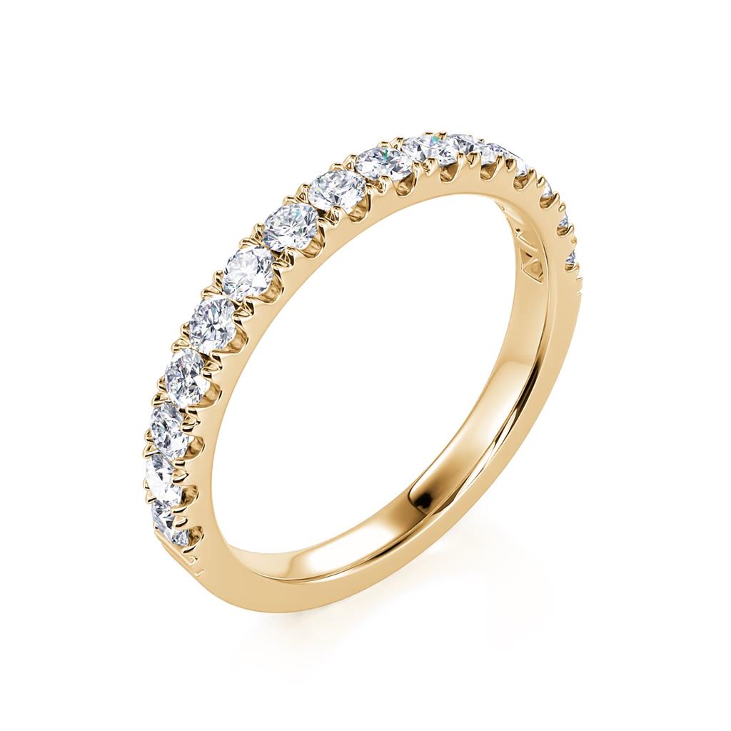 This elegant diamond band by Davis Classics in 14k yellow gold features 15 U-prong set round brilliant cut diamonds, each measuring 2.0mm and totaling 0.53 carats. With G/H color and VS1-VS2 clarity, these diamonds sparkle with a refined brilliance that beautifully symbolizes enduring love. Available in size 6, with additional sizes upon request, this exquisite band is perfect for celebrating life’s most cherished moments and meaningful commitments.
