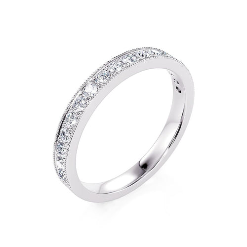Davis Classics Women's 14k White Gold Vintage Inspired Diamond Band with Milgrain Detail