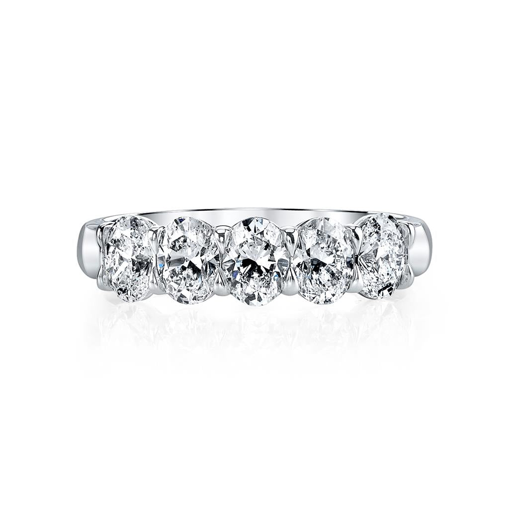 This luxurious Davis Classics platinum diamond band features 5 shared prong set oval cut diamonds, each measuring 5.5 x 4mm and totaling 1.93 carats. With H color and SI1 clarity, these diamonds exude timeless brilliance, making this band a perfect symbol of enduring love and sophistication. Available in size 6, with additional sizes upon request, this elegant band is perfect for celebrating life’s most meaningful moments and commitments.