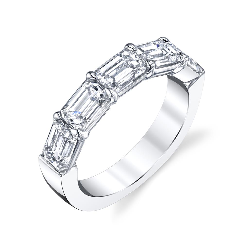 Davis Classics Women's Platinum Five-Stone East/West Emerald-Cut Diamond Band