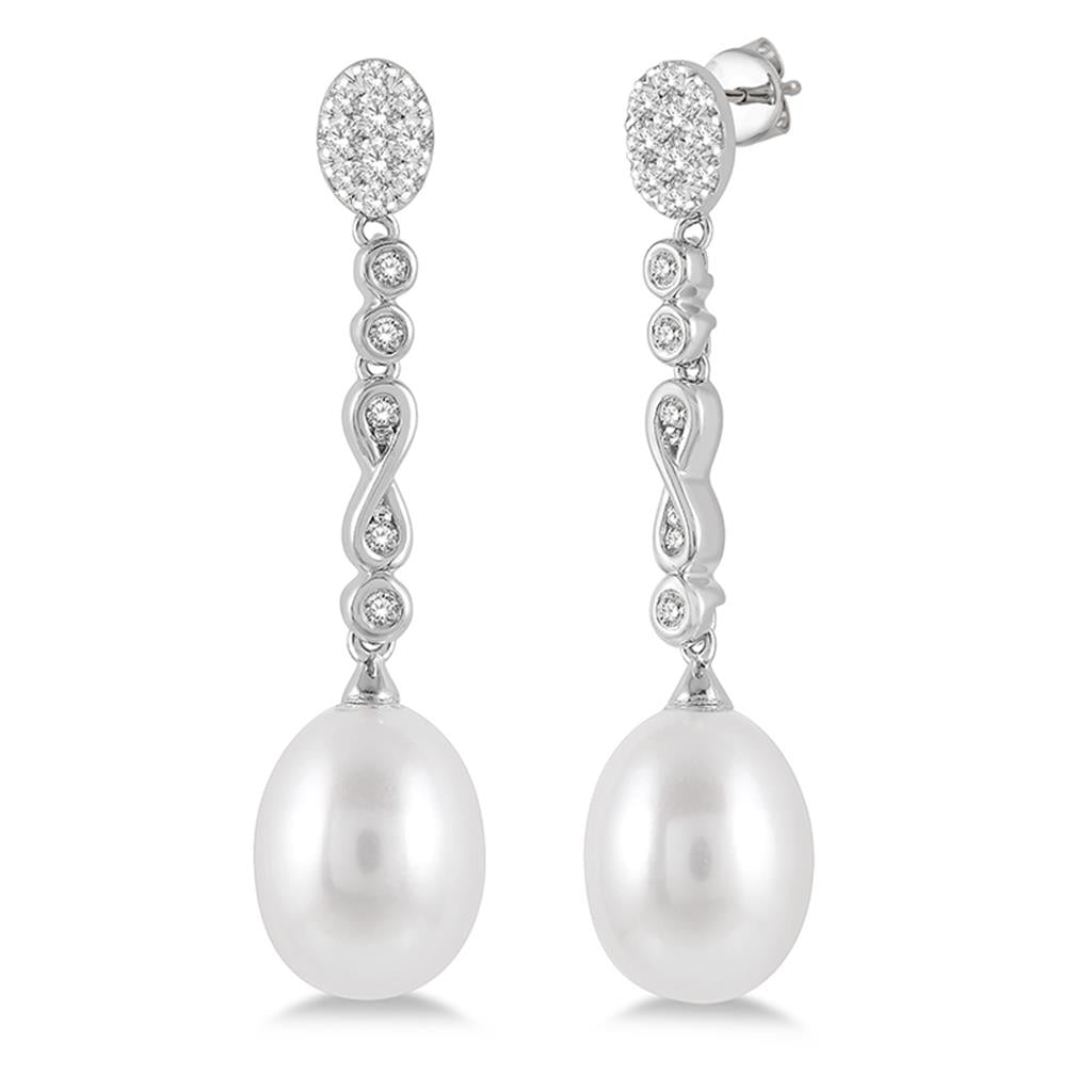 Davis Signature 14k White Gold Vintage-Style Pearl and Diamond Drop Earrings